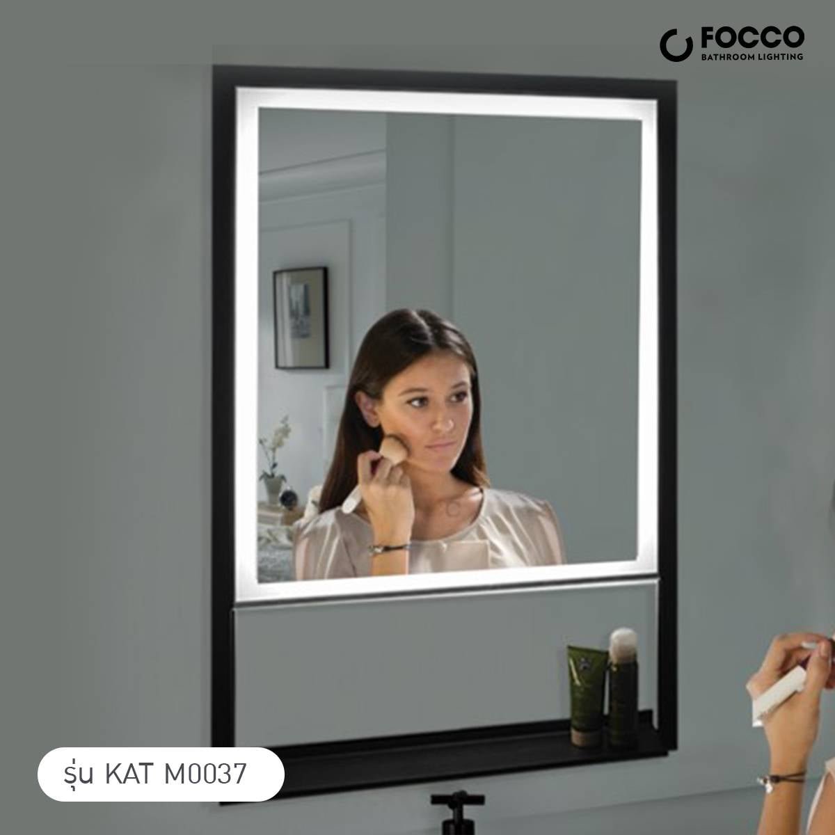 FOCCO กระจกไฟพร้อมชั้นวาง กรอบสีดำ รุ่น KAT M0037 ดีไซน์ทรงสี่เหลี่ยมขอบมน ขนาด 55x86 cm.